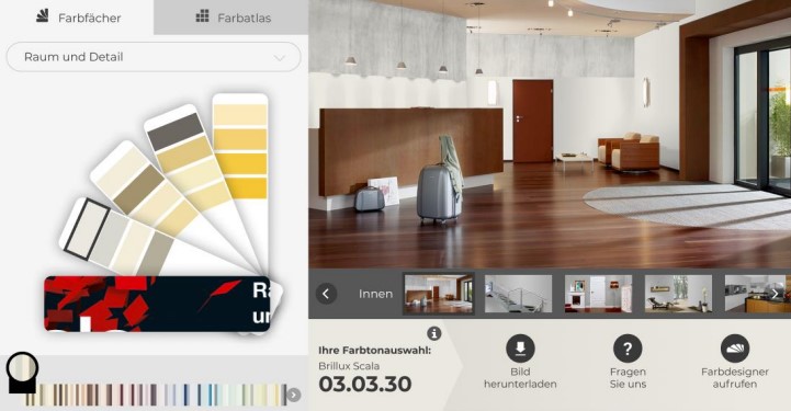 Hier kann Ihnen der Brillux-Farbdesigner weiterhelfen: